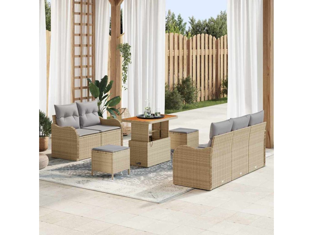 Sada zahradních pohovek s polštářem 8 pcs Béžová polyratan 3362212