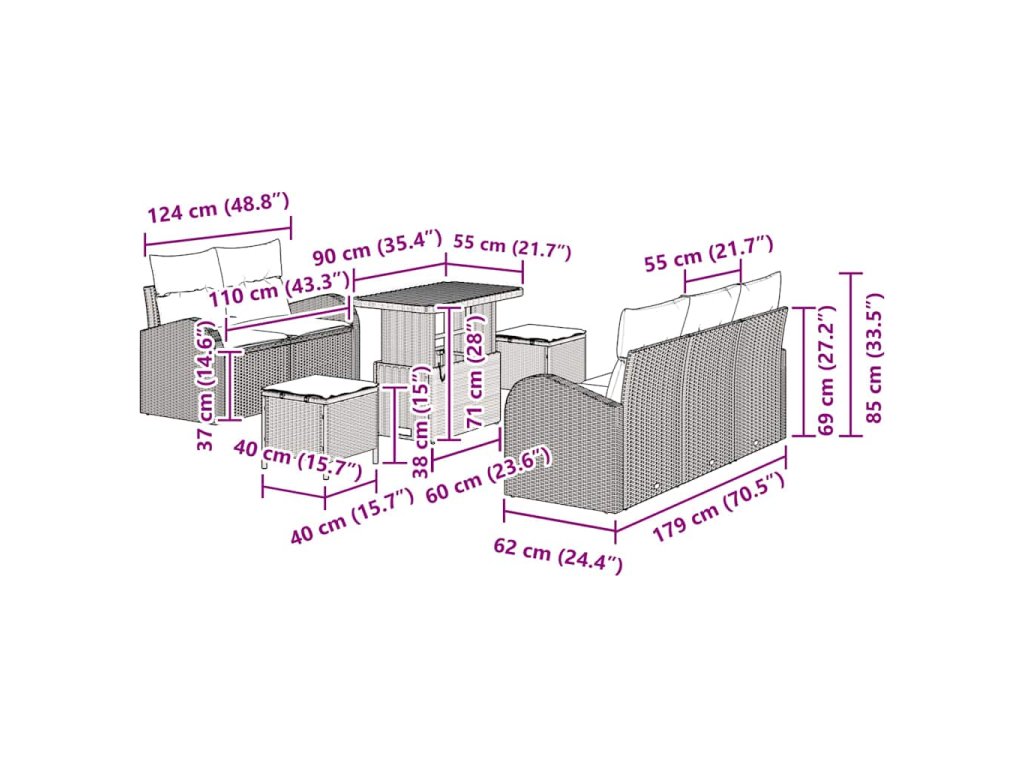 Tento moderní venkovní pohovkový set je skvělý pro každý venkovní prostor. Nabízí ideální mix stylu a funkčnosti, s čistými liniemi a minimalistickým designem, který udělá tvoji zahradu nebo terasu krásnější. Je to prostor pro odpočinek i setkání, a díky odolnému materiálu si ho užiješ venku, ať už s přáteli nebo sám.
