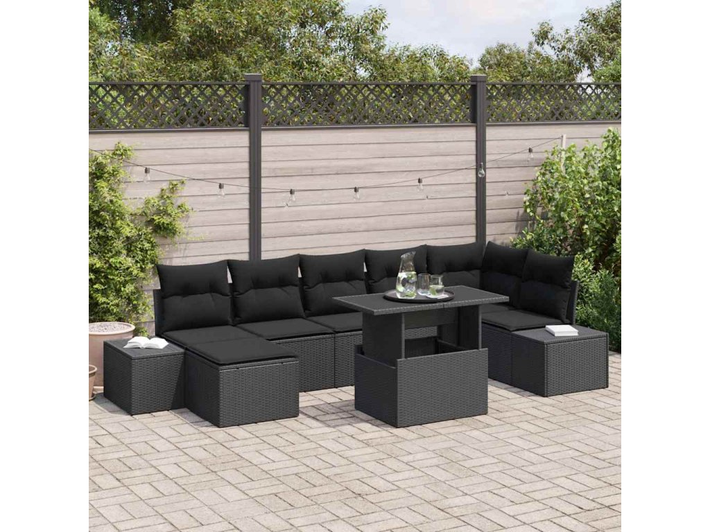 Sada zahradních pohovek s polštářem 8 pcs Černá 3349229