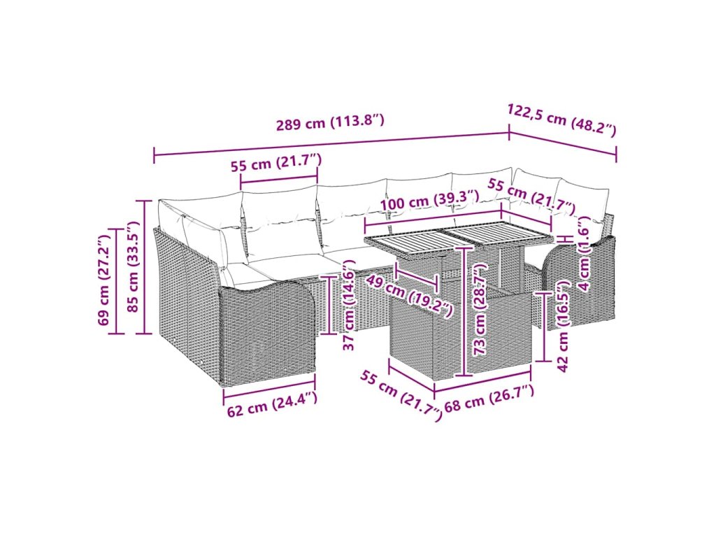 - Modulární uspořádání: S různými částmi si set můžete poskládat podle potřeby. Ať už organizujete intimní setkání nebo velkou zahradní party, kombinace pohovek a středových sedadel vám to umožní snadno přizpůsobit pro hosty i vaše preference.