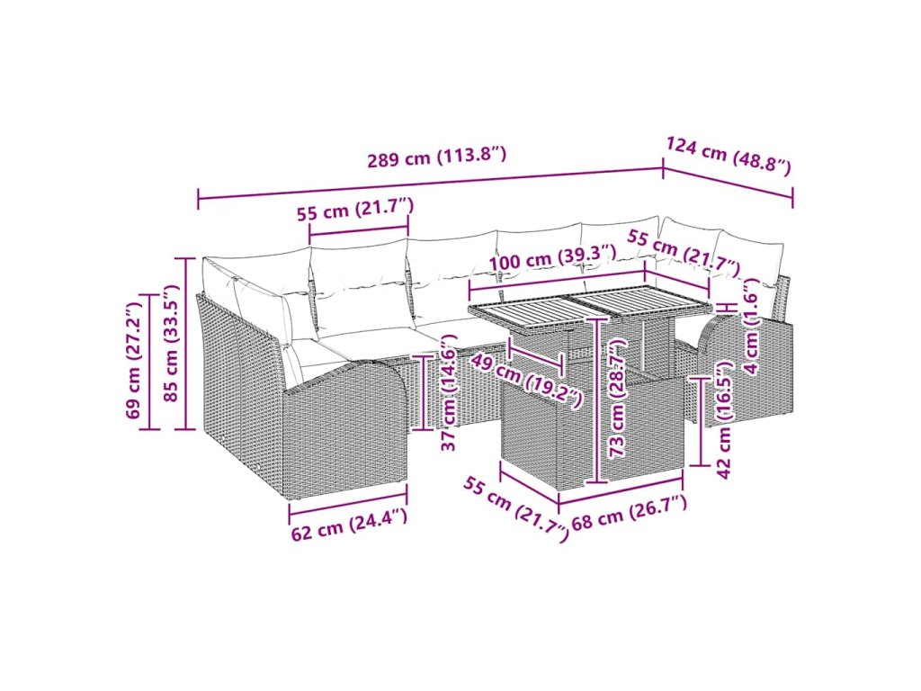- Součásti: Souprava zahrnuje dvě křesla, dvě rohová sedadla, tři centrální sedadla a jeden zahradní stůl, vše s praktickým úložným prostorem. Tyto kusy se snadno spojí a vytvoří skvělou sedací soupravu pro zábavu a odpočinek s dostatkem místa. Stůl a sedadla k sobě skvěle padnou a vytvářejí krásný a soudržný vzhled.