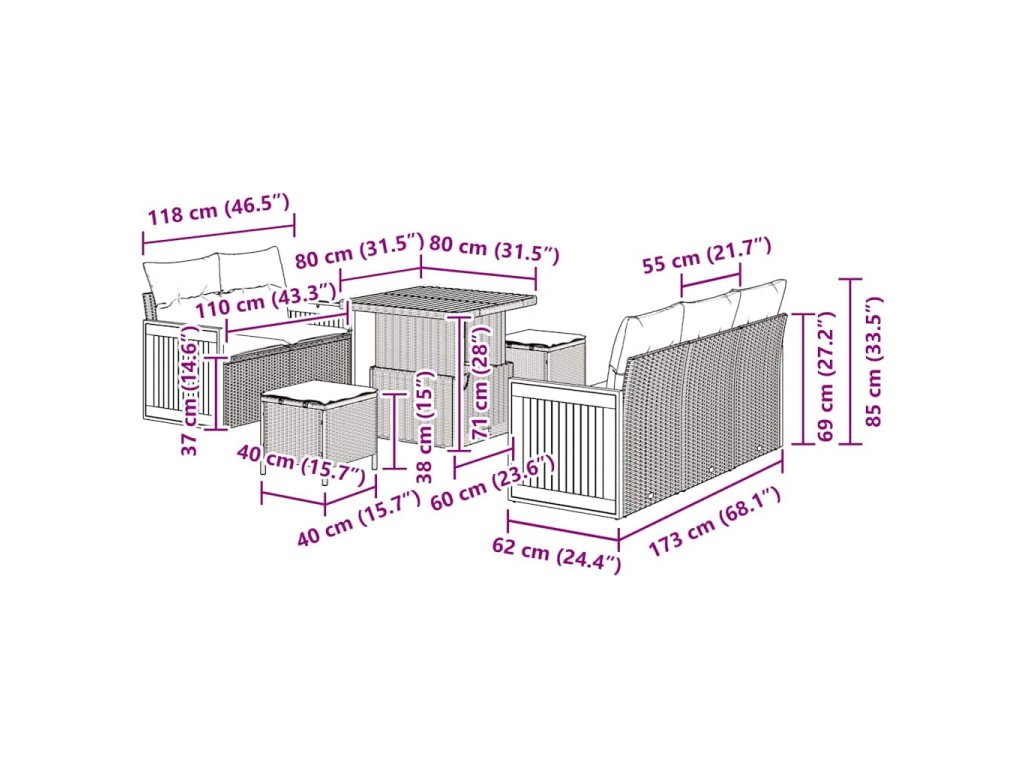 - Adaptabilní funkce S výškově nastavitelnými stoly, které mění výšku z kávového na jídelní, tato souprava ti poskytuje univerzálnost na každou příležitost. Modulární prvky lze lehce přeskupit, takže se hodí do jakéhokoli prostoru, ať už máš klidný večer nebo divokou párty.