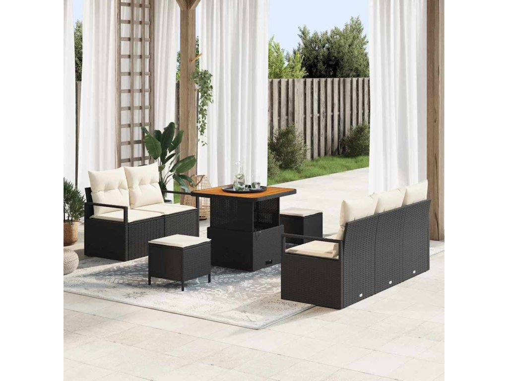 Sada zahradních pohovek s polštářem 8 pcs Černá a krémová 3364415
