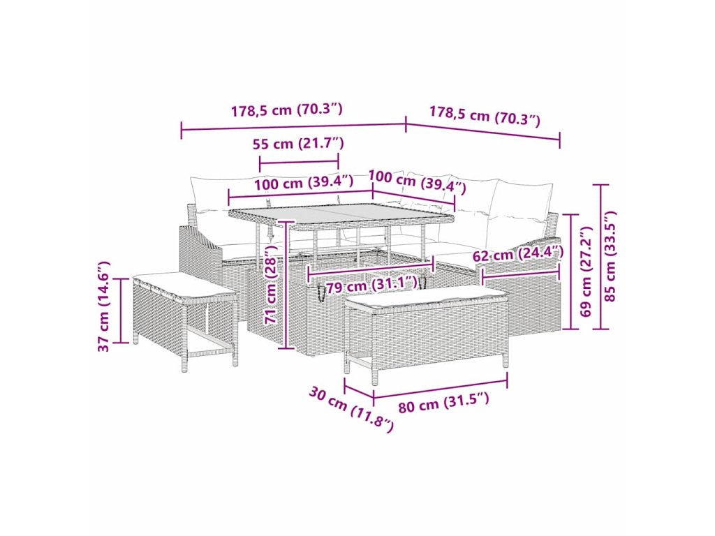 - Doporučené použití: Tento pohovkový set je perfektní pro venkovní prostory jako jsou zahrady a terasy. Modulární design umožňuje uspořádání pro odpočinek iformální posezení, takže se stane cenným doplňkem každé zahrady.
