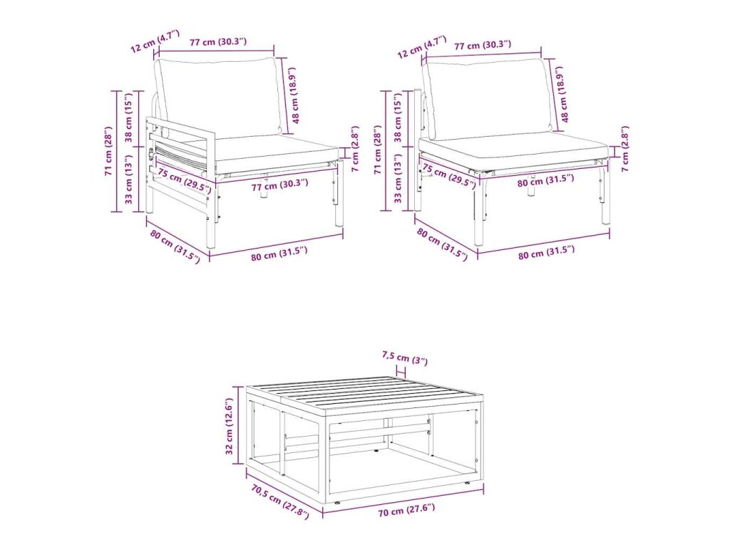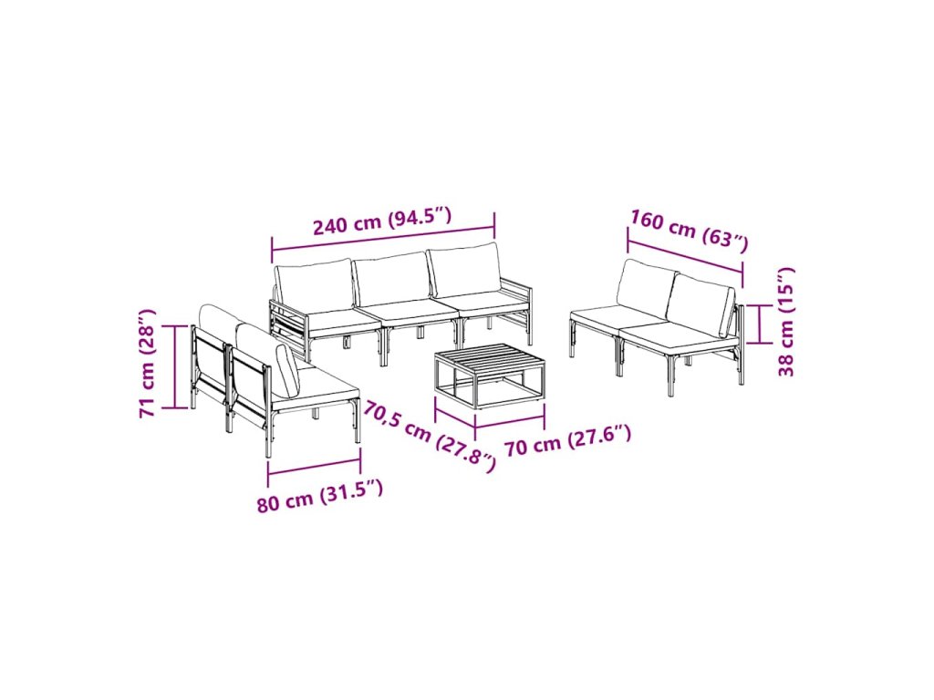 - 5 x Středová pohovka: 80 x 80 x 71 cm (DxŠxV)