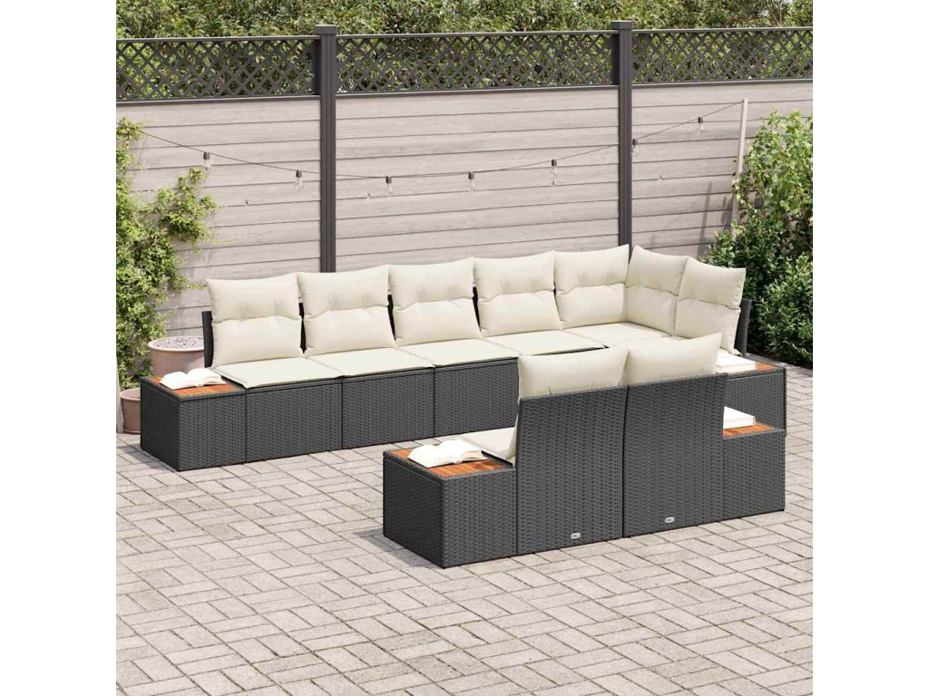 Sada zahradních pohovek s polštářem 8 pcs Černá Poly ratan 3348108