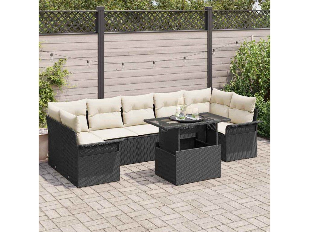 Sada zahradních pohovek s polštářem 8 pcs Černá Poly ratan 3348233
