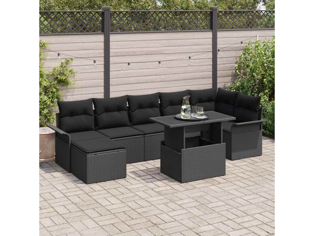 Sada zahradních pohovek s polštářem 8 pcs Černá Poly ratan 3348329