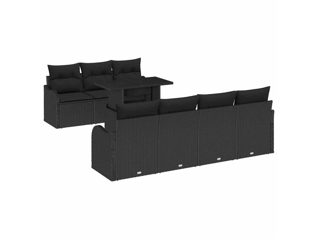 Sada zahradních pohovek s polštářem 8 pcs Černá Poly ratan 3348409