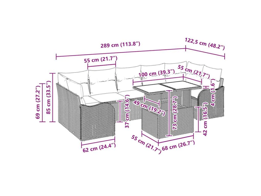 Tahle zahradní sedací souprava je elegantní volba na letní zábavu na vaší terase. Je navržená tak, aby byla jednoduchá a funkční, s čistými liniemi a málo ozdobami, což ji dělá ideální pro moderní zahrady nebo terasy. Její modulární uspořádání pro 8 lidí vám umožní flexibilně uspořádat sezení, ideální pro večírky nebo klidné noci pod hvězdami. Díky odolnému poly ratanovému materiálu tahle sada nejen vypadá skvěle, ale je také dlouhotrvající a pohodlná pro venkovní využití.