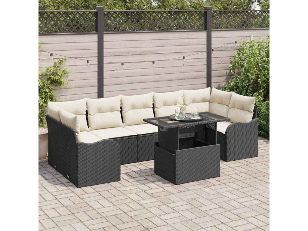 Sada zahradních pohovek s polštářem 8 pcs Černá Poly ratan 3348413