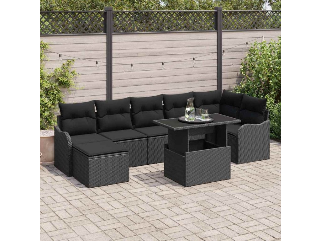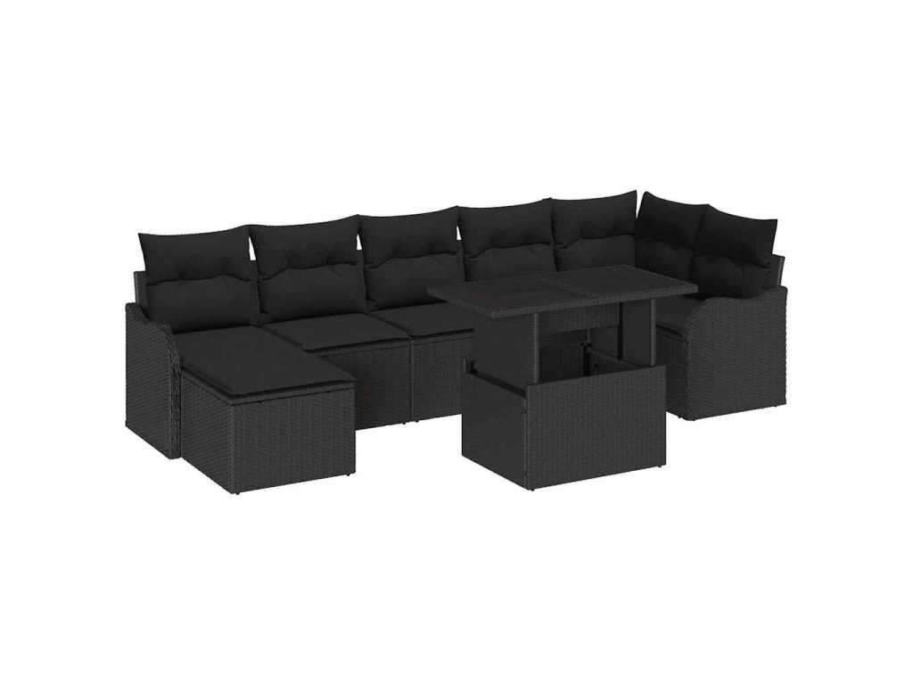 Sada zahradních pohovek s polštářem 8 pcs Černá Poly ratan 3348509