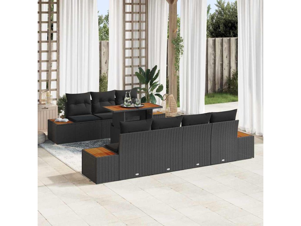 Sada zahradních pohovek s polštářem 8 pcs Černá Poly ratan 3350040