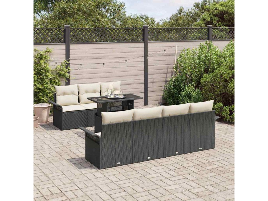 Sada zahradních pohovek s polštářem 8 pcs Černá Poly Ratan 3356960