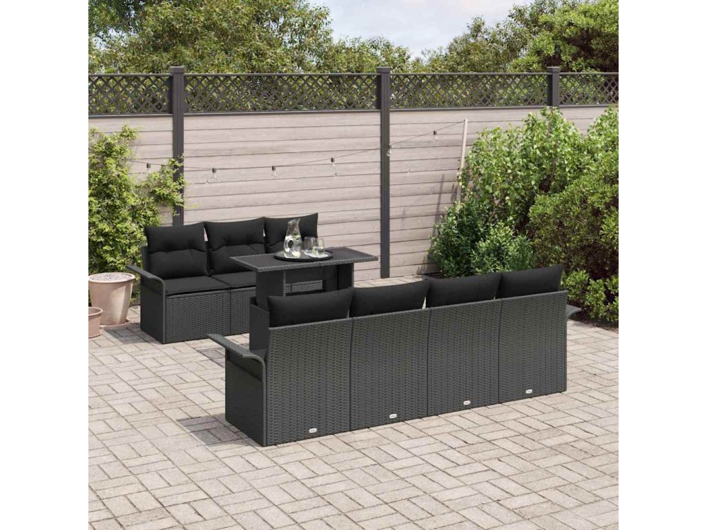 Sada zahradních pohovek s polštářem 8 pcs Černá Poly Ratan 3356966