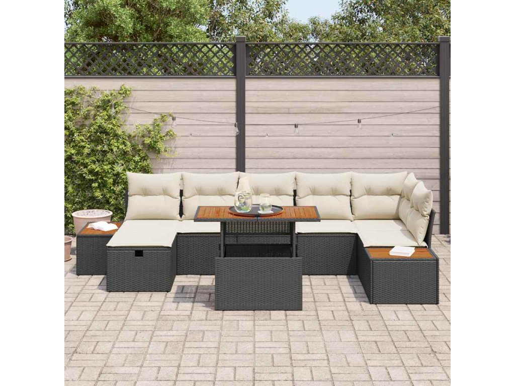 Sada zahradních pohovek s polštářem 8 pcs Černá Poly ratan 3360082