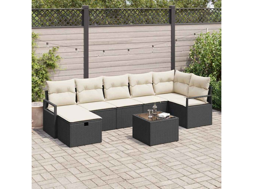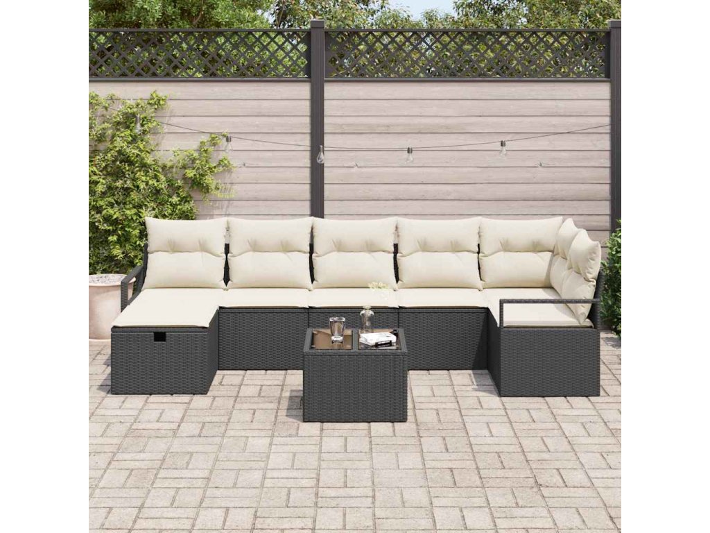 Sada zahradních pohovek s polštářem 8 pcs Černá Poly ratan 3360538