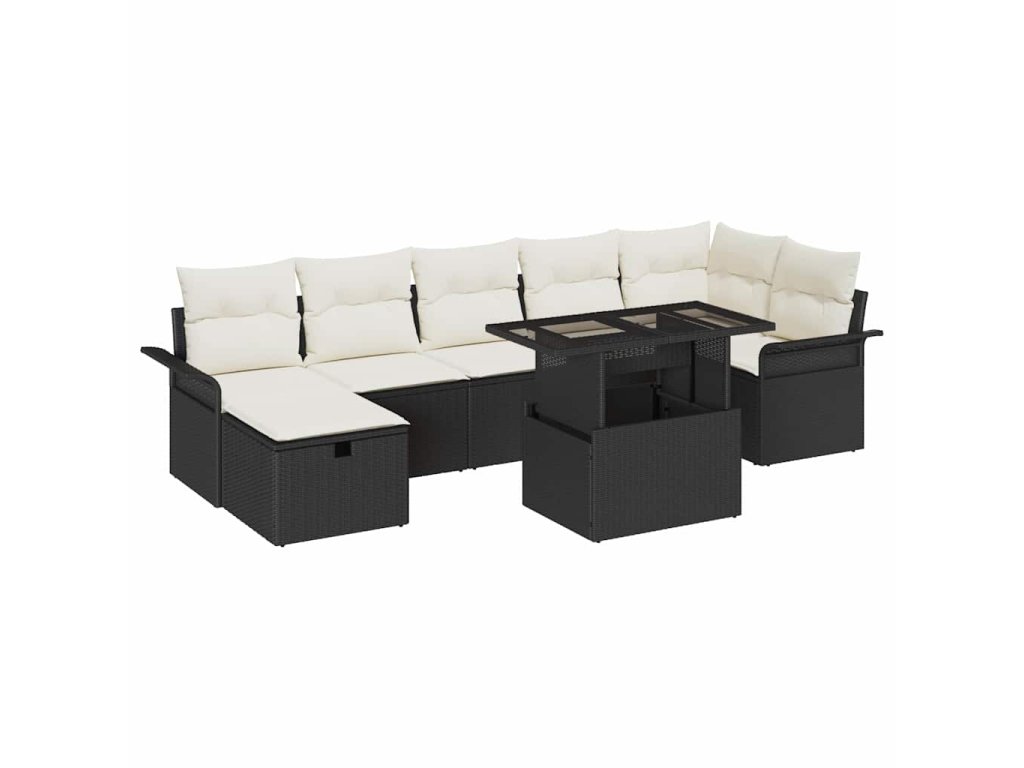 Sada zahradních pohovek s polštářem 8 pcs Černá Poly ratan 3361016