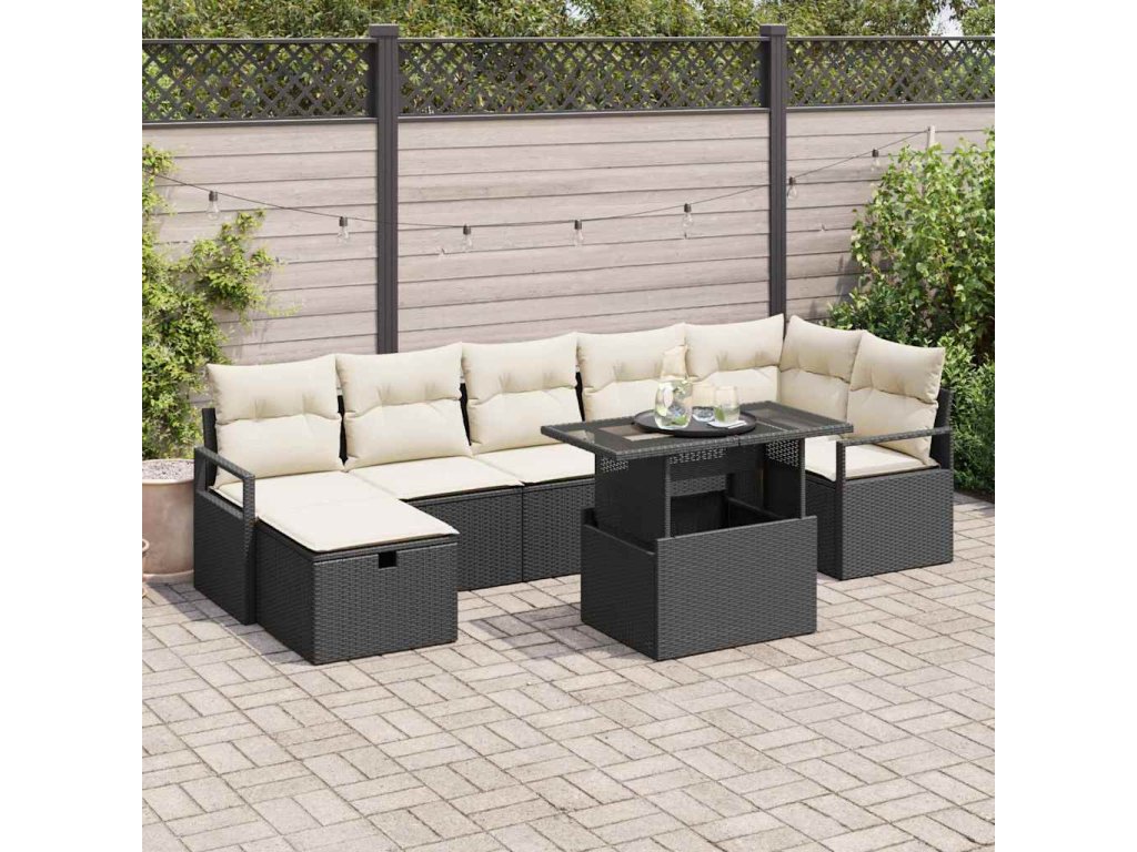 Sada zahradních pohovek s polštářem 8 pcs Černá Poly ratan 3361136
