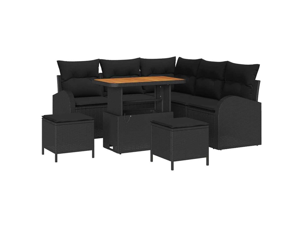 Sada zahradních pohovek s polštářem 8 pcs Černá Poly ratan 3362394