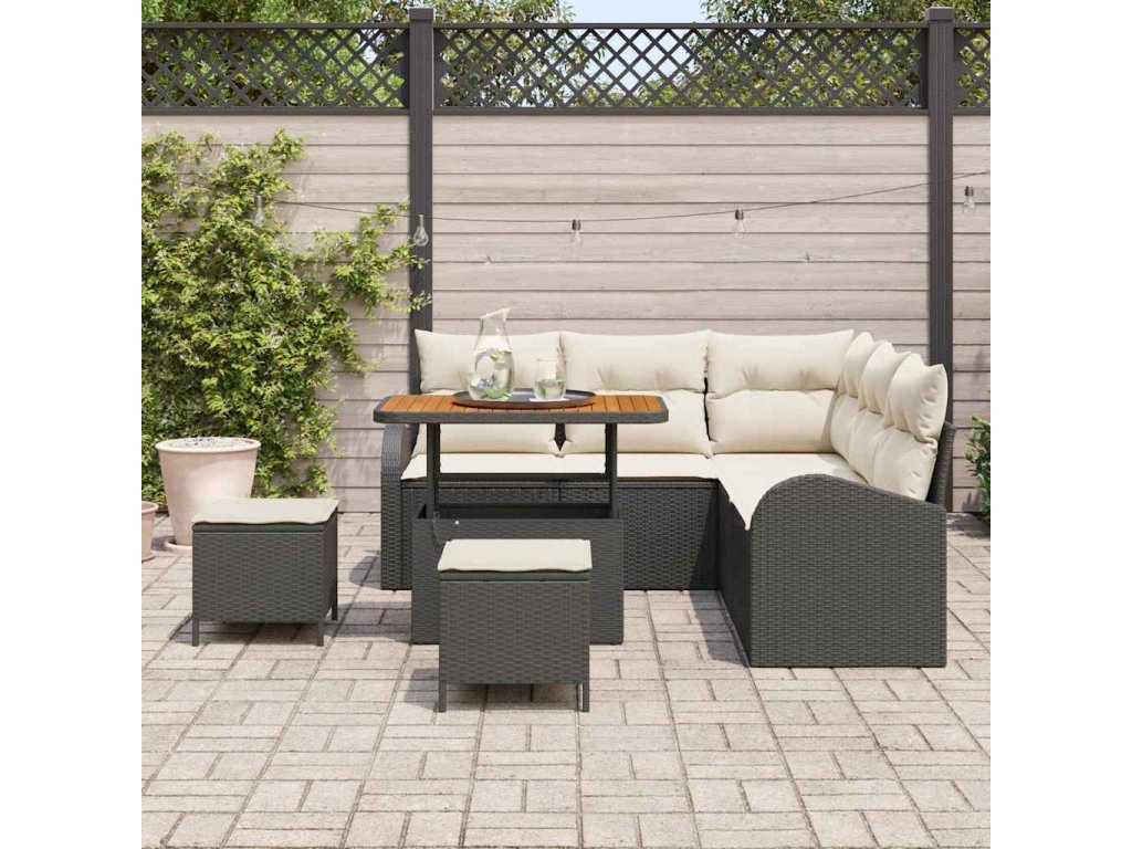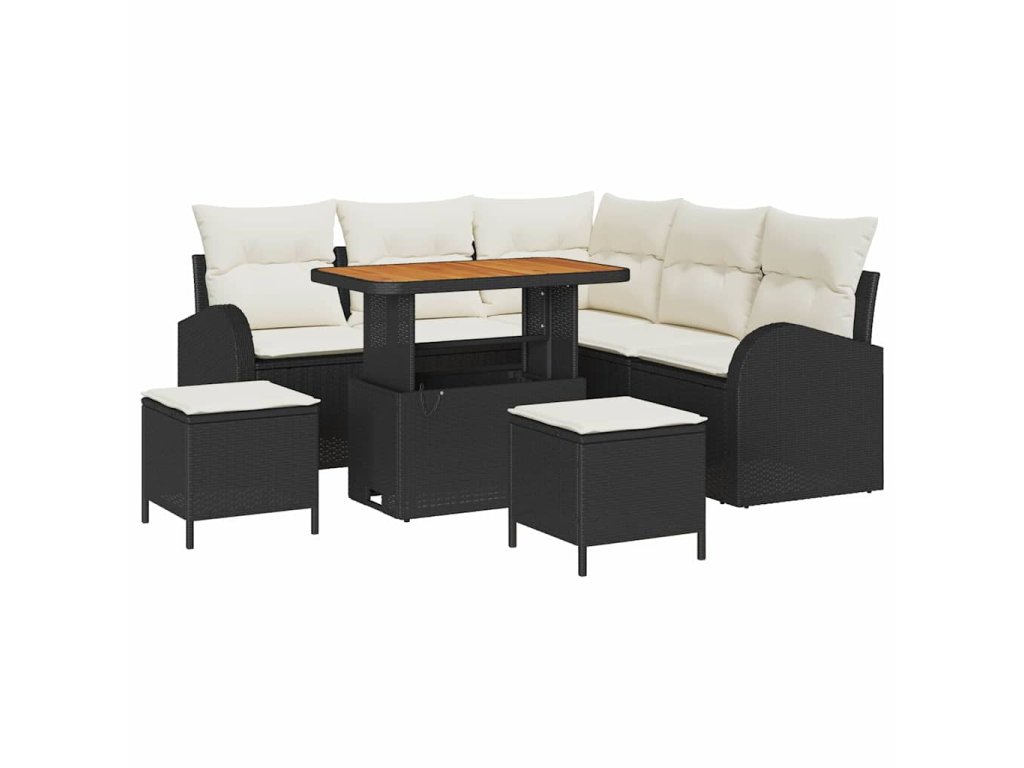 Sada zahradních pohovek s polštářem 8 pcs Černá Poly ratan 3362395