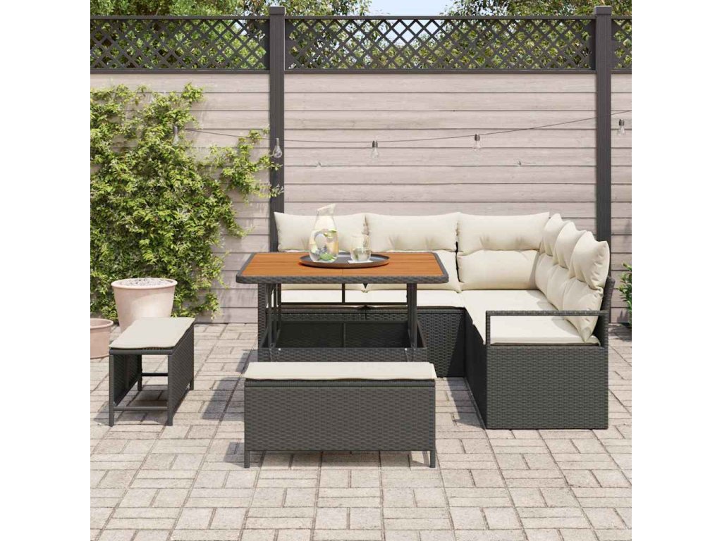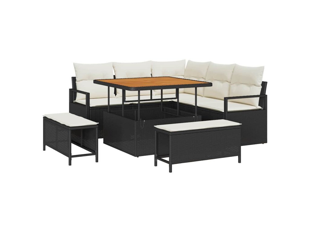 Sada zahradních pohovek s polštářem 8 pcs Černá Poly ratan 3362515