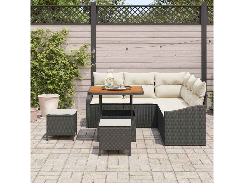 Sada zahradních pohovek s polštářem 8 pcs Černá Poly ratan 3362650