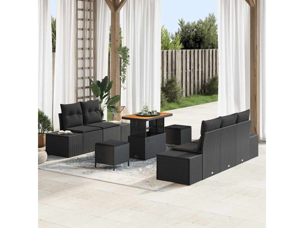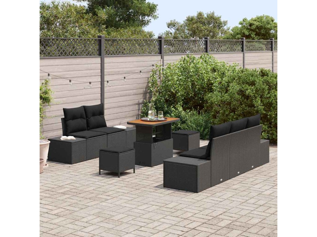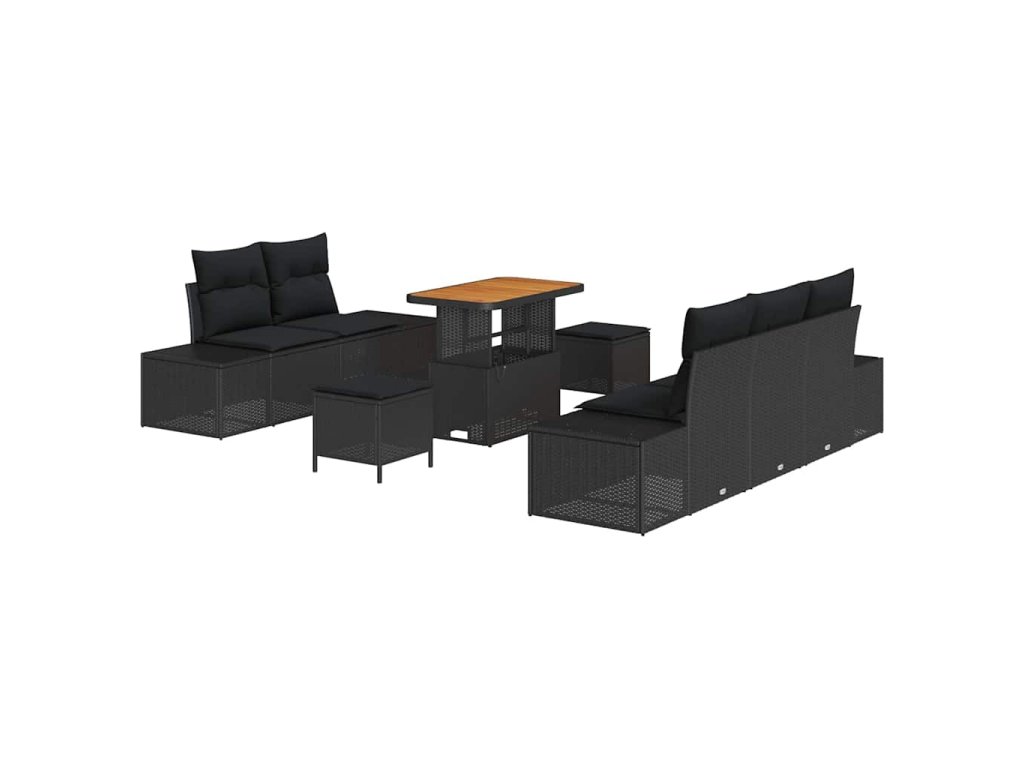 Sada zahradních pohovek s polštářem 8 pcs Černá Poly ratan 3364679