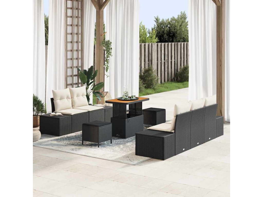 Sada zahradních pohovek s polštářem 8 pcs Černá Poly ratan 3364680