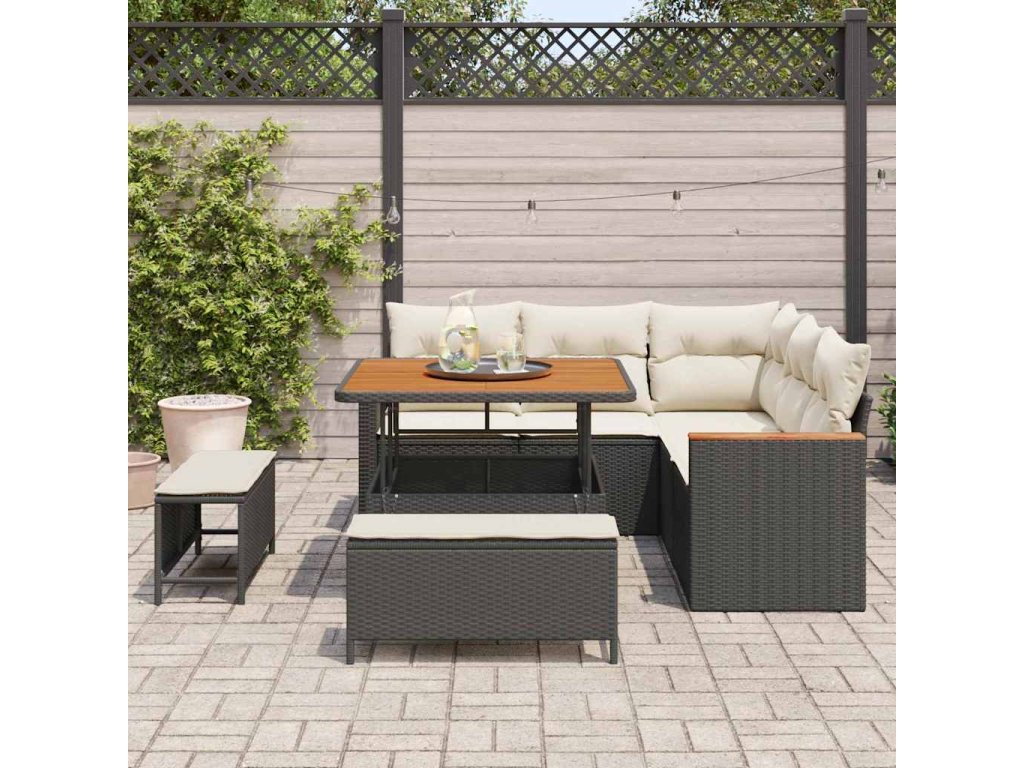 - Robustní poly ratanová pletenina Tenhle nábytek je vyroben z odolného poly ratanu, co zvládá UV záření a různé počasí, takže ti dlouho vydrží a nepřijde o barvu. Skvělá volba, aby tvůj gauč byl stále pohodlný a stylový.