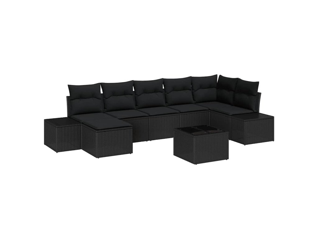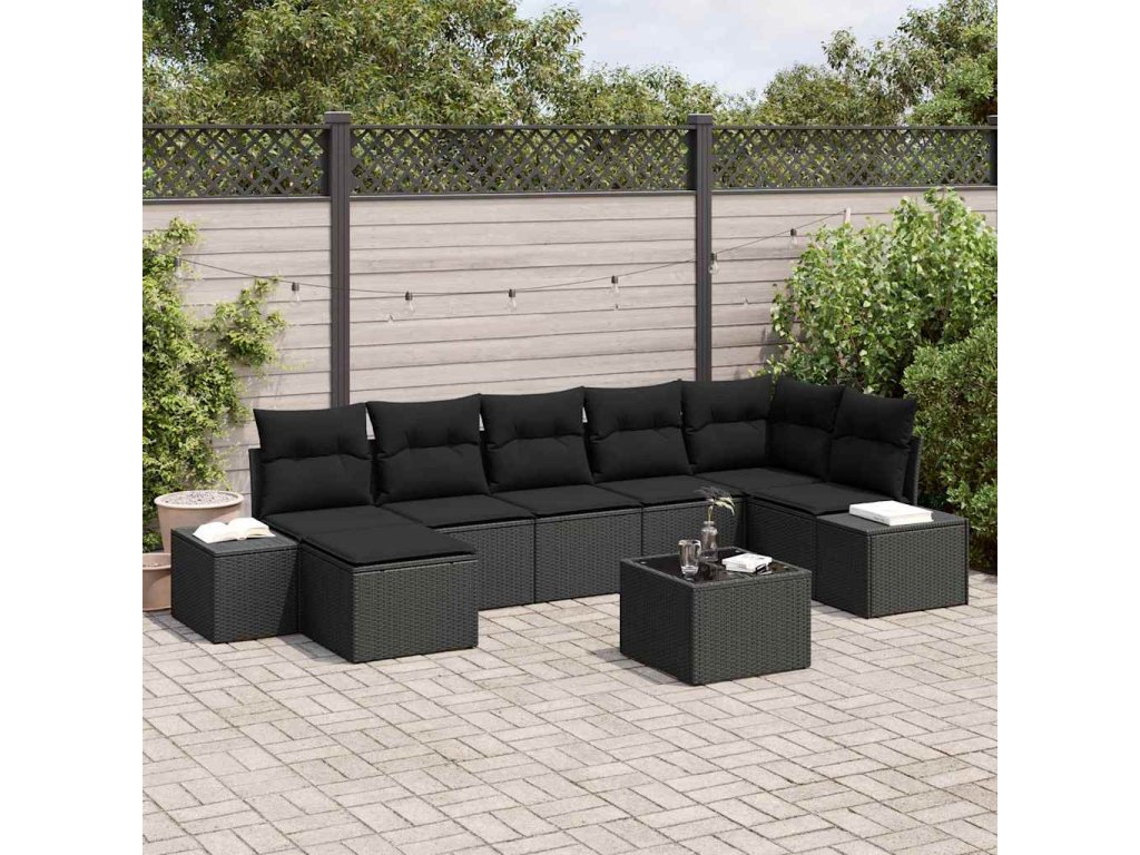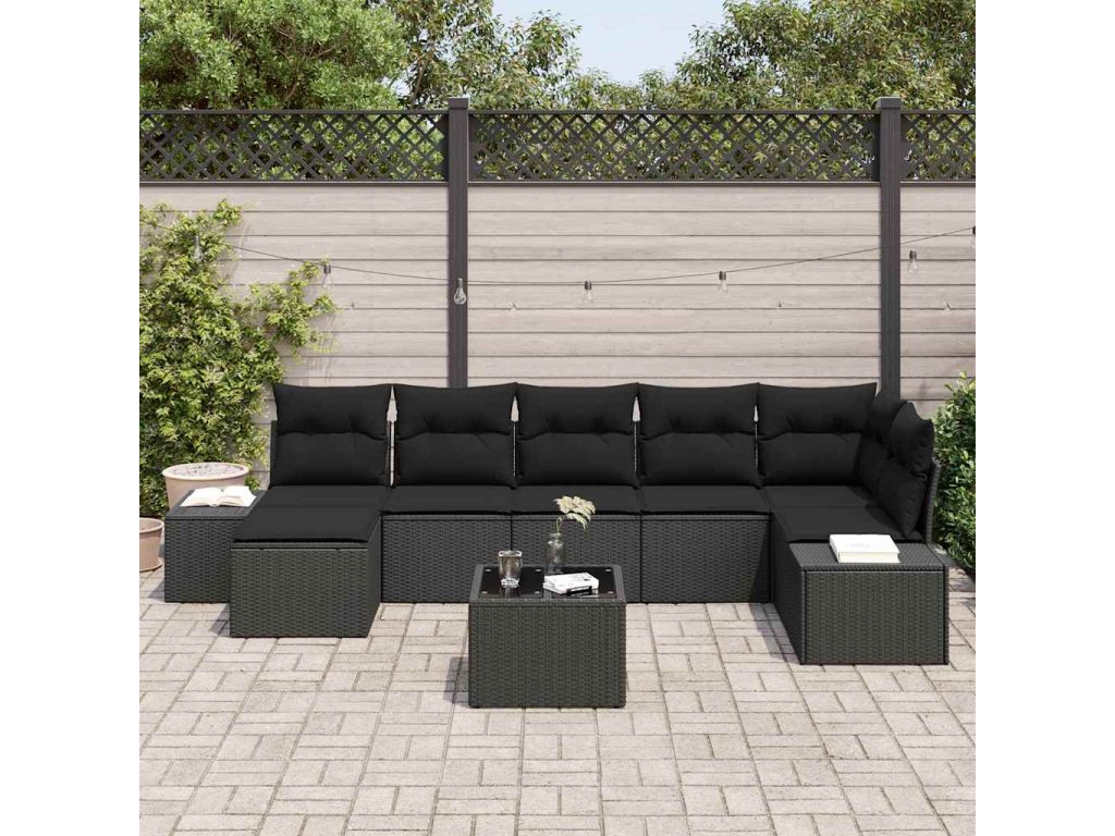 Sada zahradních pohovek s polštářem 8 pcs Černá polyratan 3347163