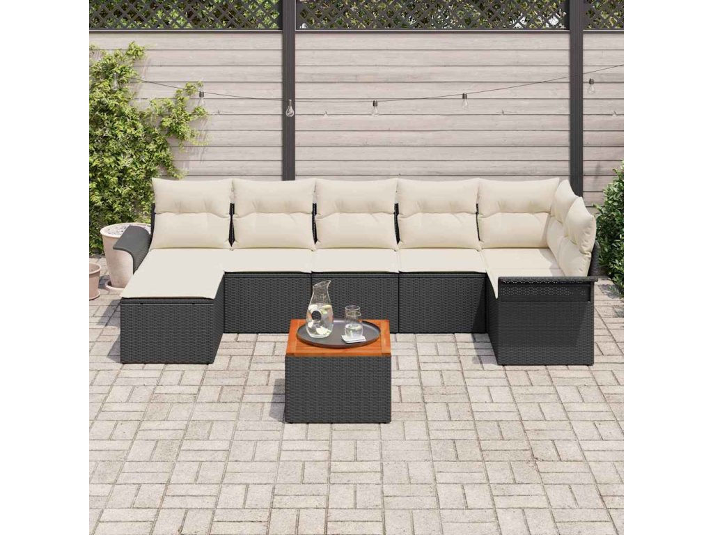 Sada zahradních pohovek s polštářem 8 pcs Černá polyratan 3347355