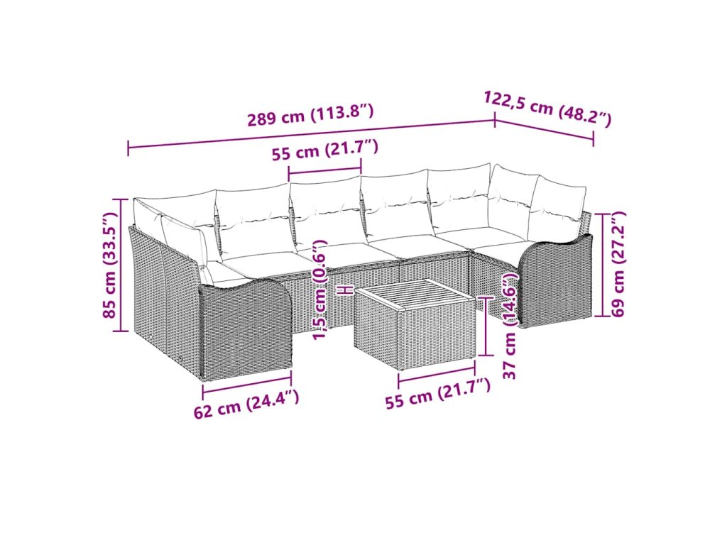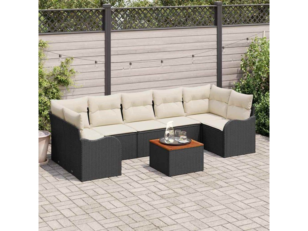 Sada zahradních pohovek s polštářem 8 pcs Černá polyratan 3347418