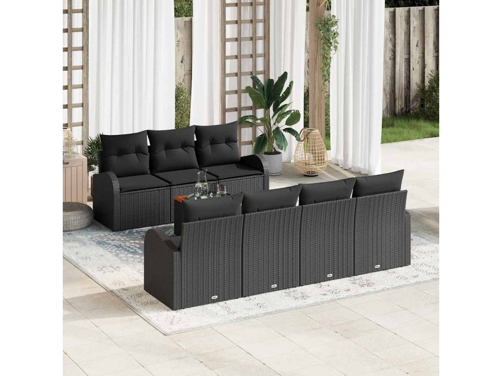 Sada zahradních pohovek s polštářem 8 pcs Černá polyratan 3347541