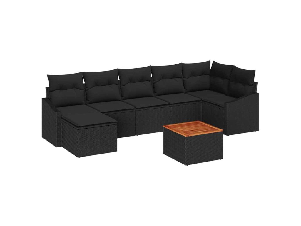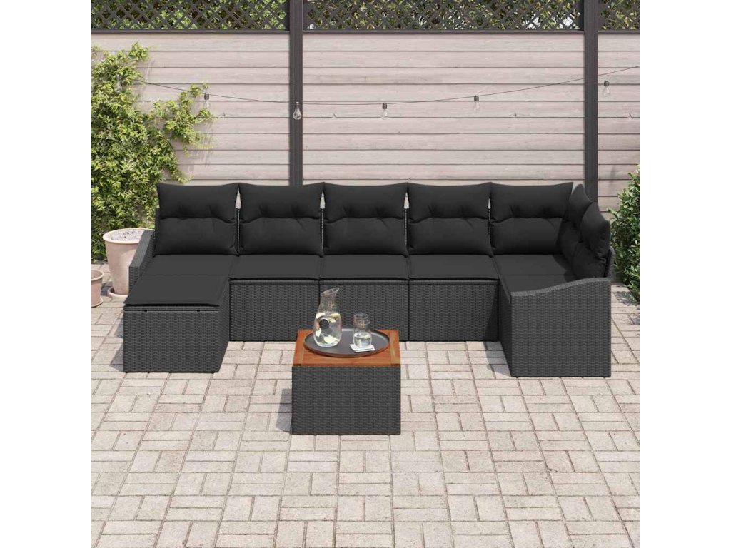 Sada zahradních pohovek s polštářem 8 pcs Černá polyratan 3347863