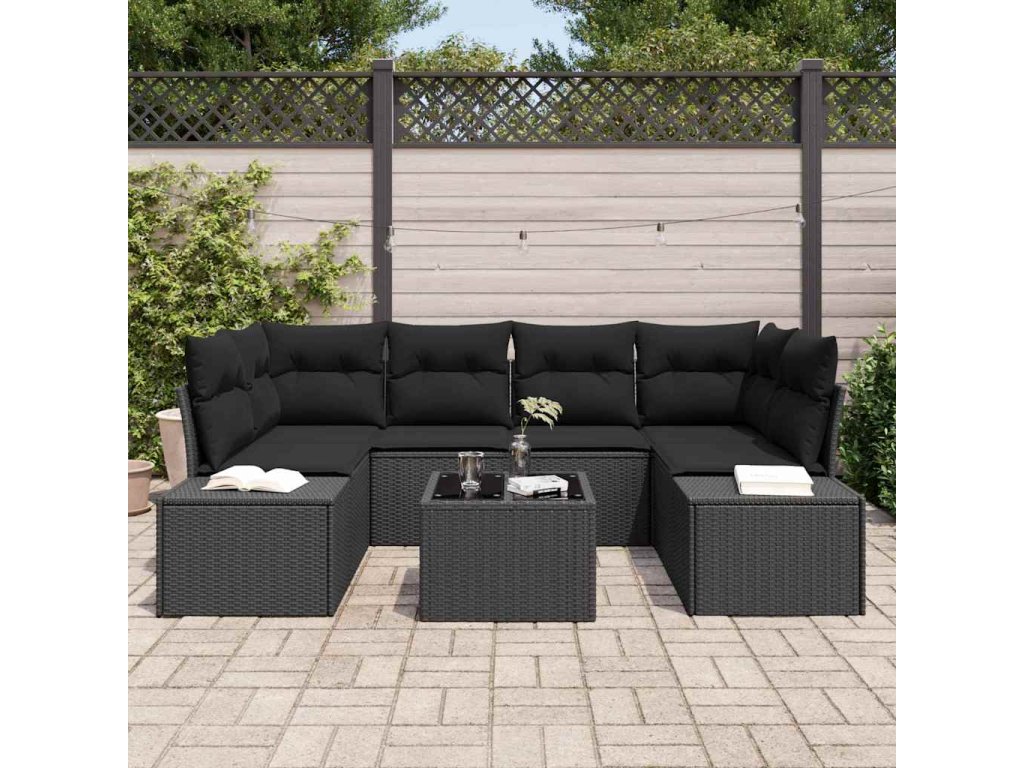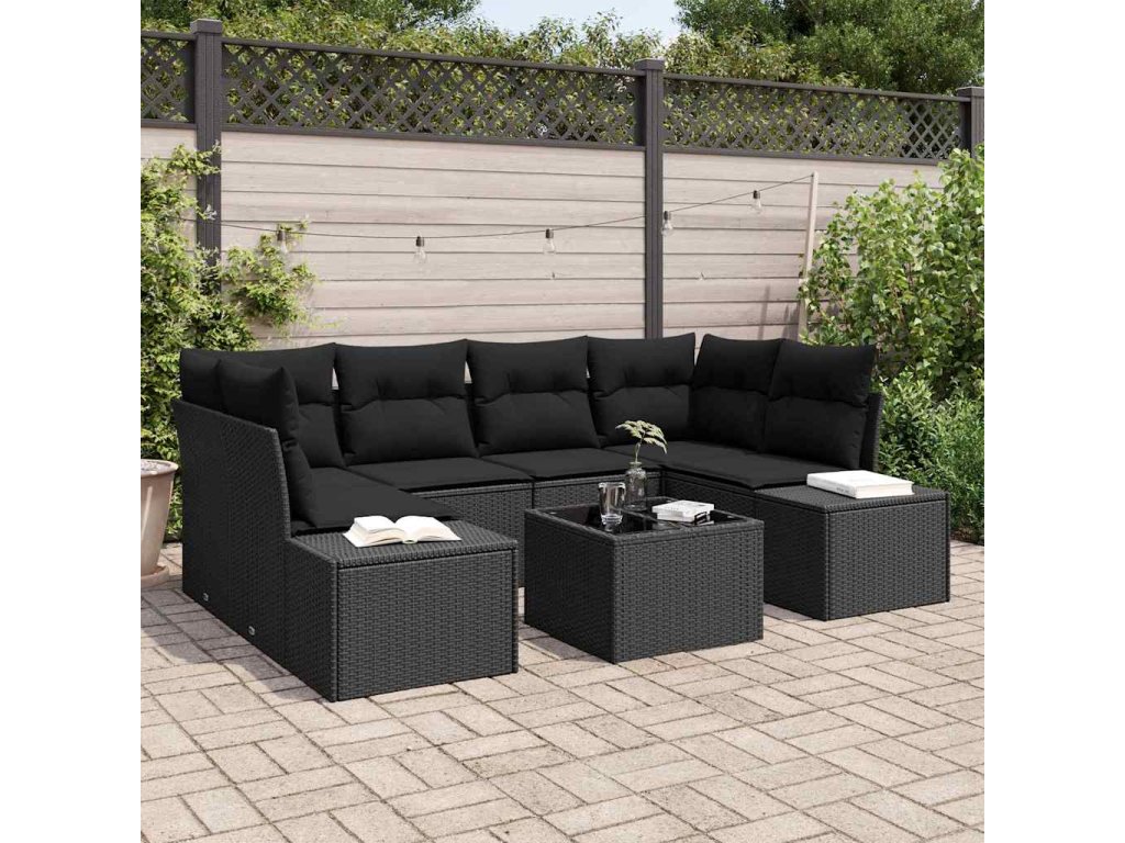 Sada zahradních pohovek s polštářem 8 pcs Černá polyratan 3355632