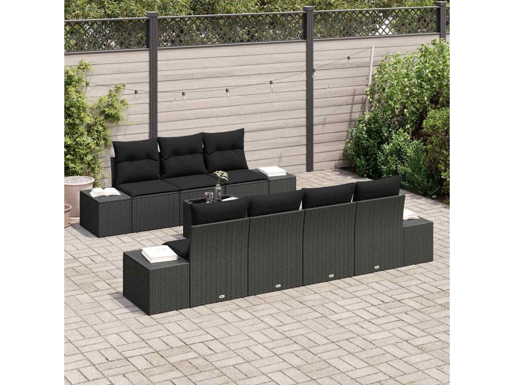 Sada zahradních pohovek s polštářem 8 pcs Černá polyratan 3355642