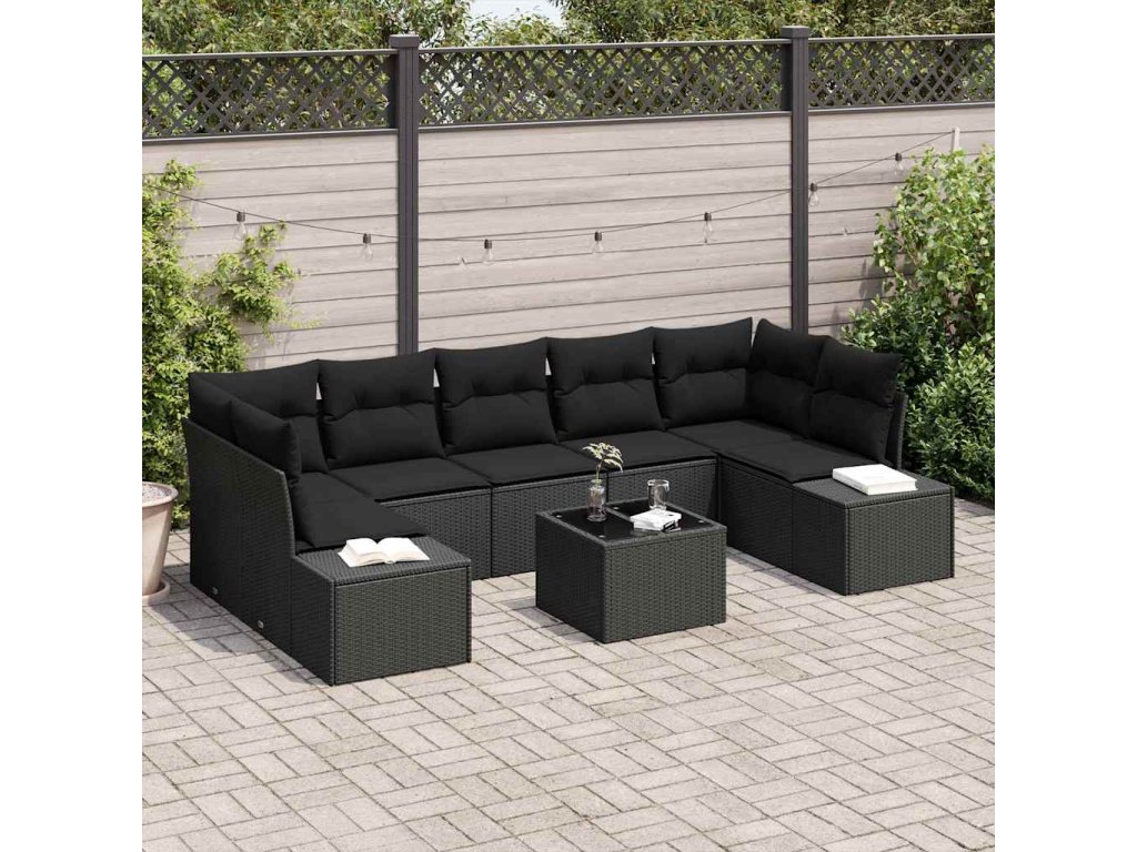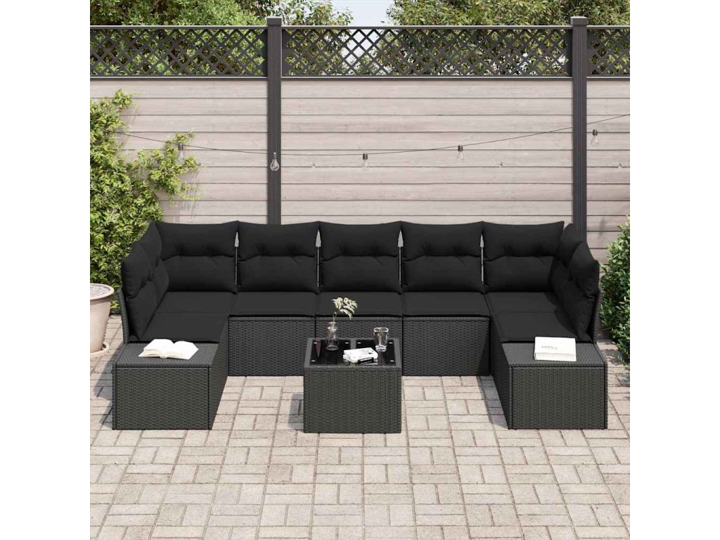 Sada zahradních pohovek s polštářem 8 pcs Černá polyratan 3355652