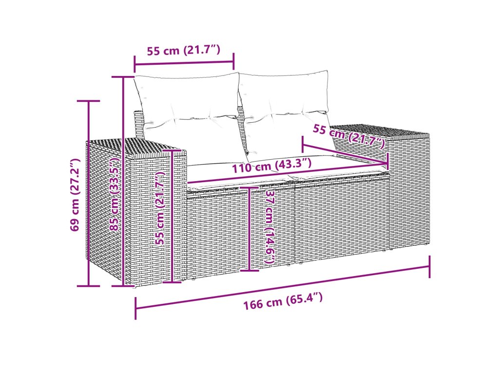 - 1 x Střední sedák: 55 x 62 x 69 cm (ŠxHxV)