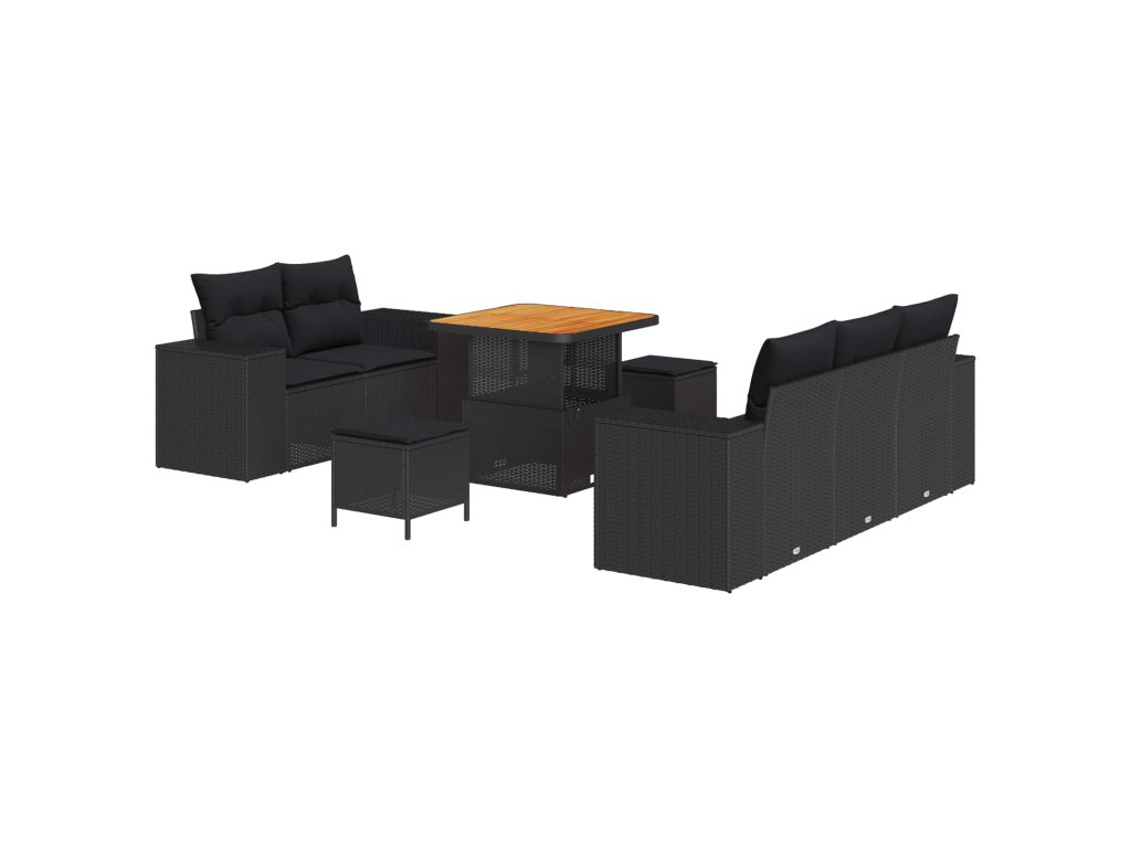 Sada zahradních pohovek s polštářem 8 pcs Černá polyratan 3361944