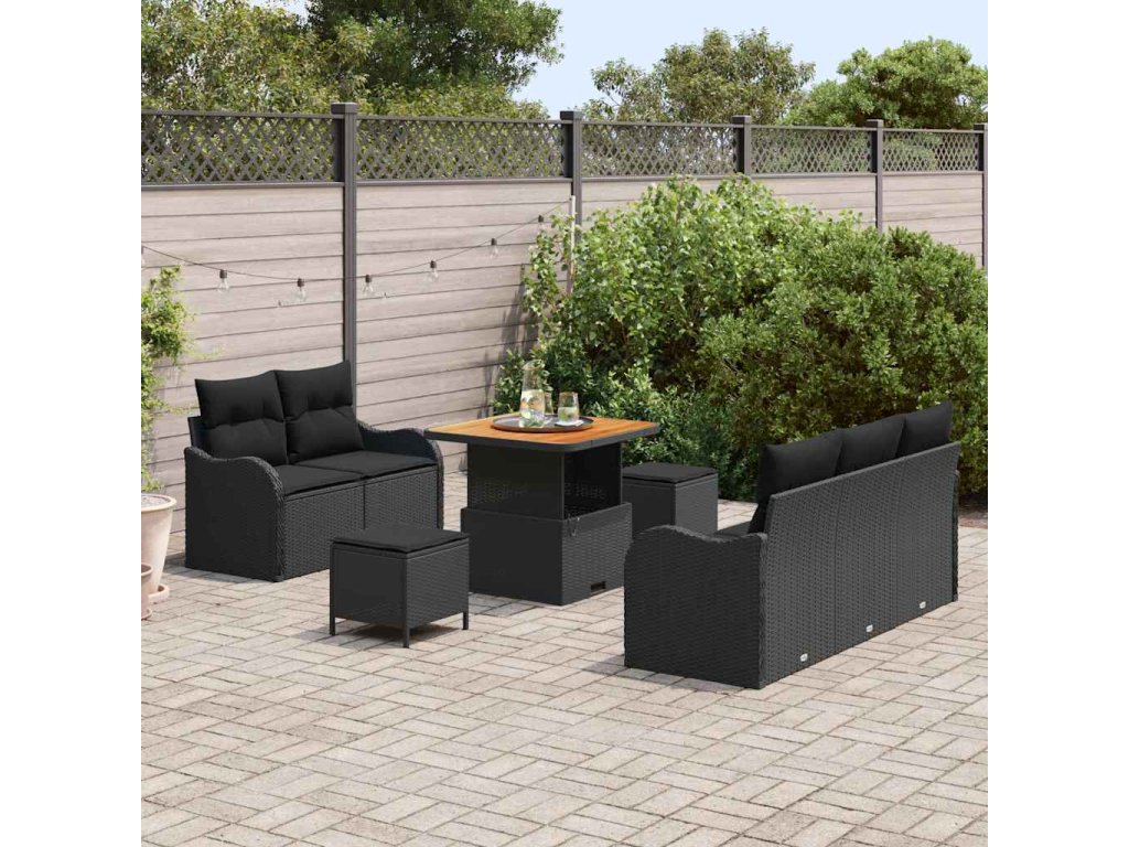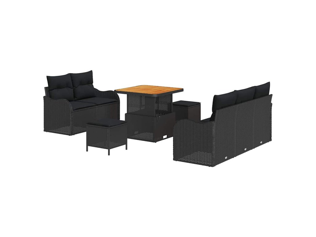 Sada zahradních pohovek s polštářem 8 pcs Černá polyratan 3362204