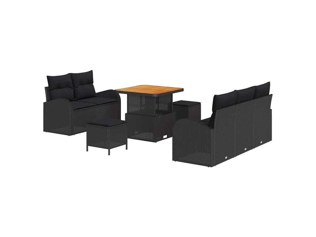 Sada zahradních pohovek s polštářem 8 pcs Černá polyratan 3362334