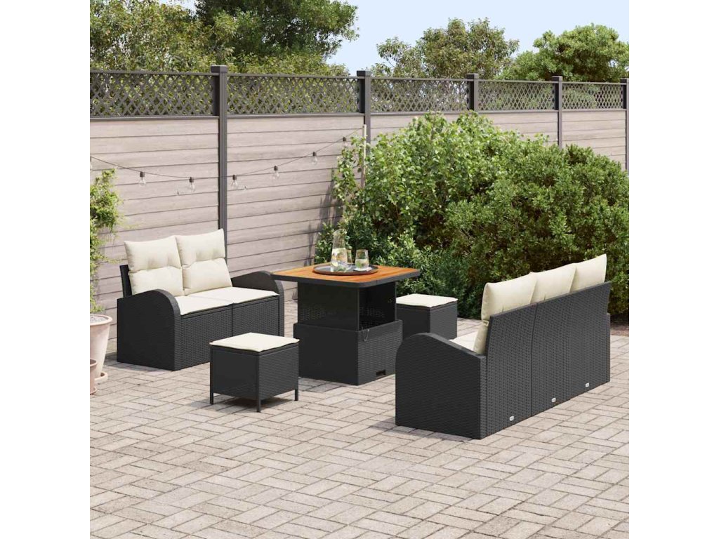 Sada zahradních pohovek s polštářem 8 pcs Černá polyratan 3362335