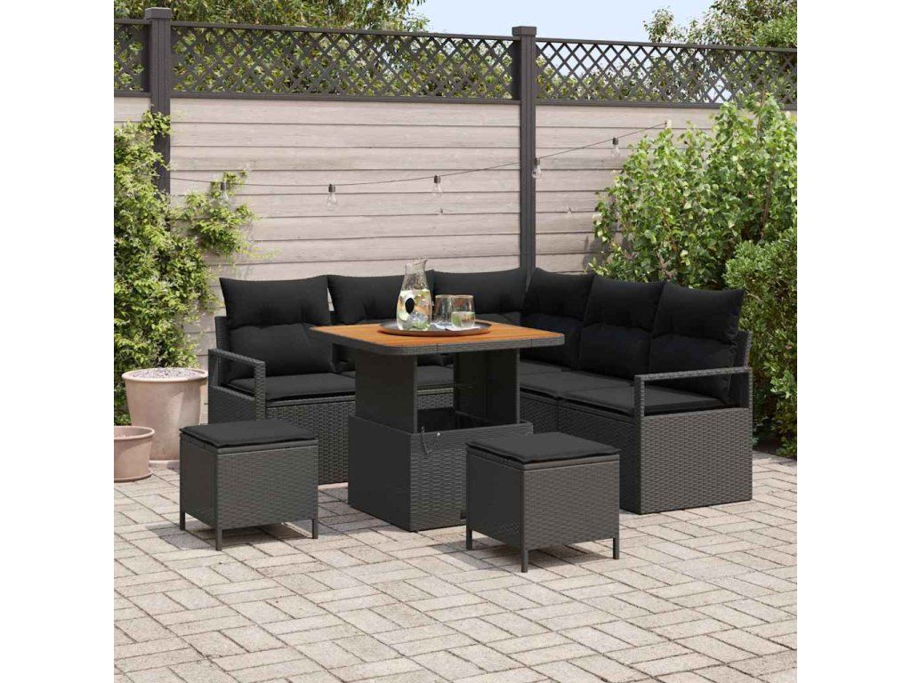 Sada zahradních pohovek s polštářem 8 pcs Černá polyratan 3362519