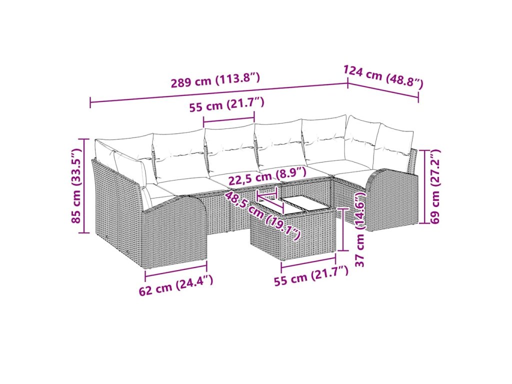 Sada zahradních pohovek s polštářem 8 pcs Hnědá a krémová 3354627