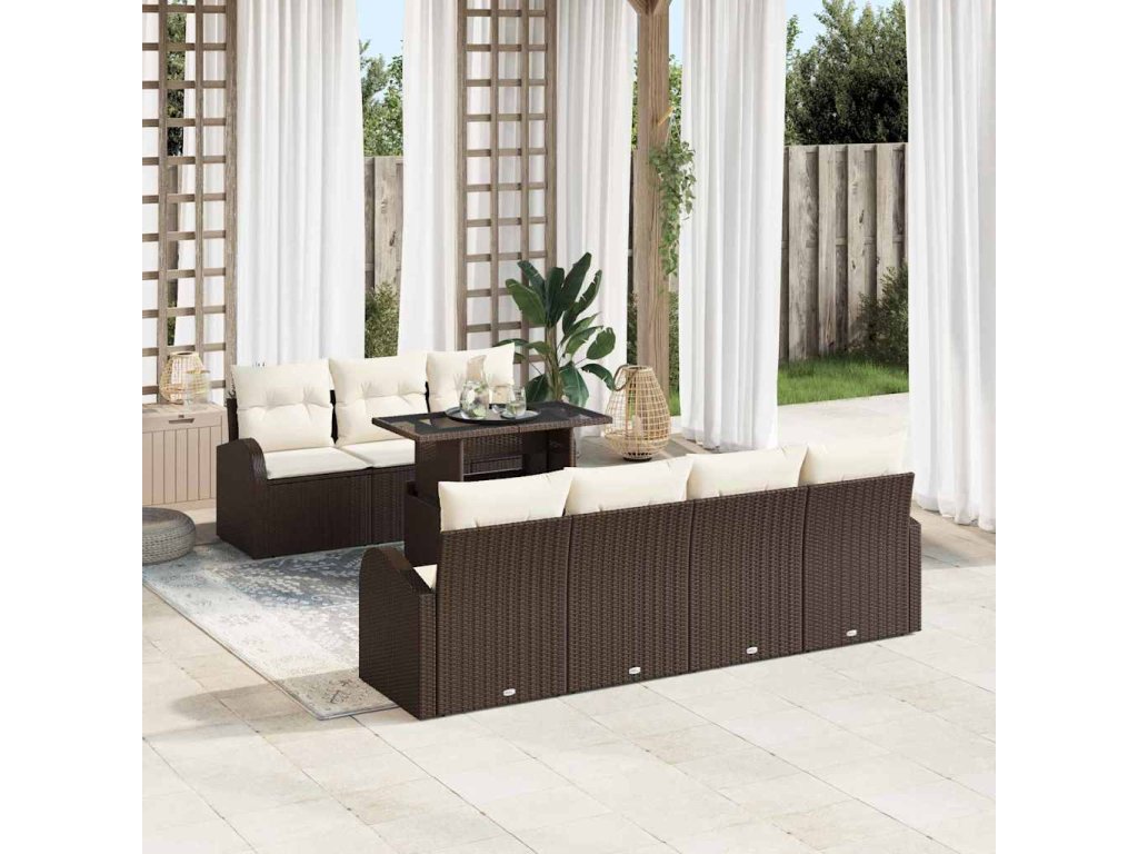 Sada zahradních pohovek s polštářem 8 pcs Hnědá Poly ratan 3348584