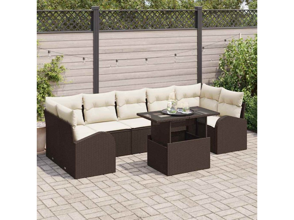 Sada zahradních pohovek s polštářem 8 pcs Hnědá Poly ratan 3348594