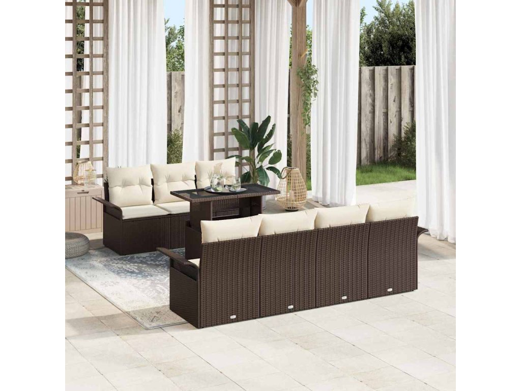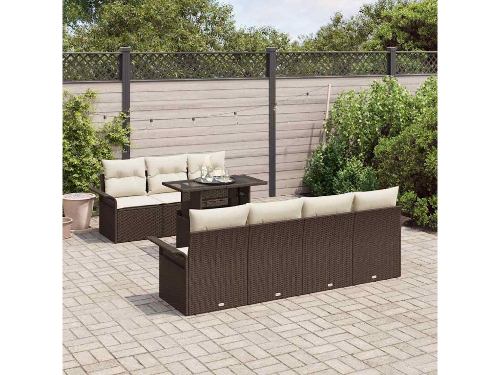 Sada zahradních pohovek s polštářem 8 pcs Hnědá Poly ratan 3356961