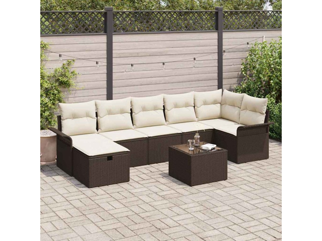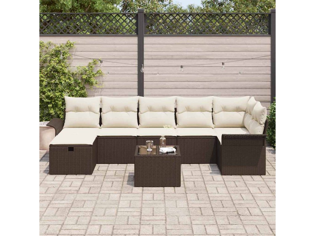 Sada zahradních pohovek s polštářem 8 pcs Hnědá Poly ratan 3360239