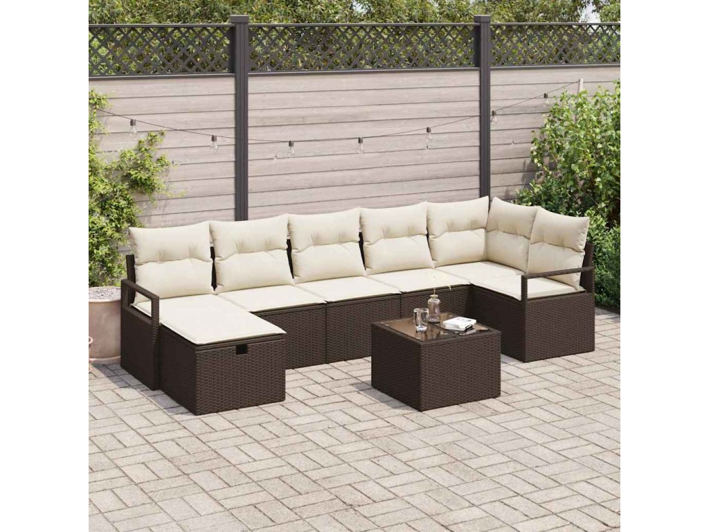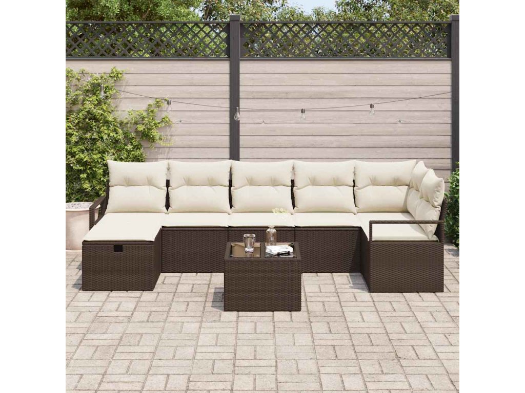 Sada zahradních pohovek s polštářem 8 pcs Hnědá Poly ratan 3360539